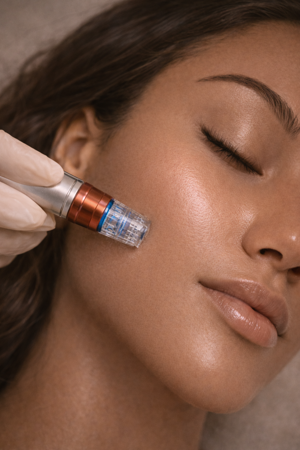 Microneedling is a collagen-stimulating treatment that uses tiny, controlled micro-injuries to trigger the skin’s natural healing process. This boosts collagen and elastin production for firmer, smoother skin.